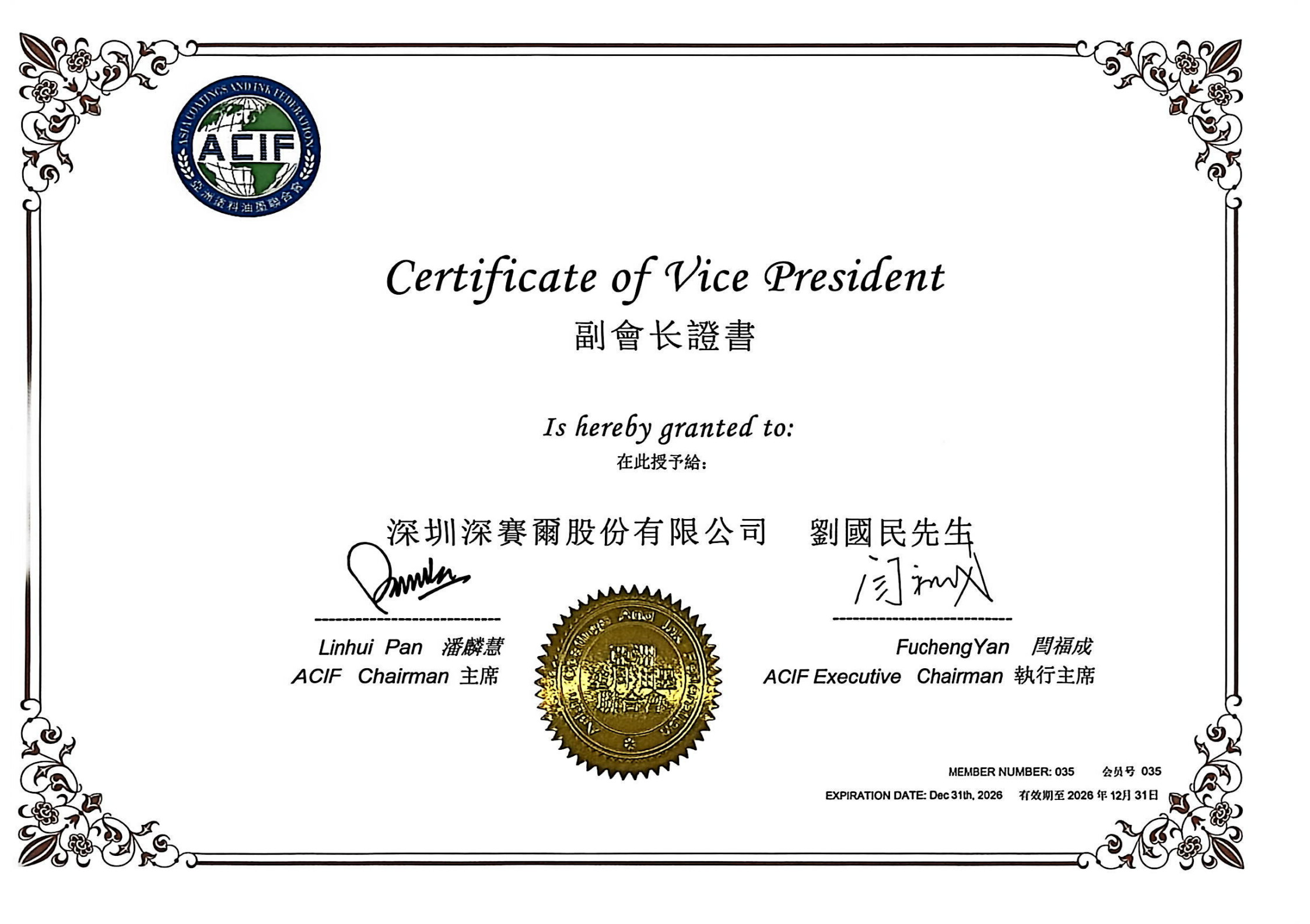 亞洲涂料油墨聯合會副會長單位